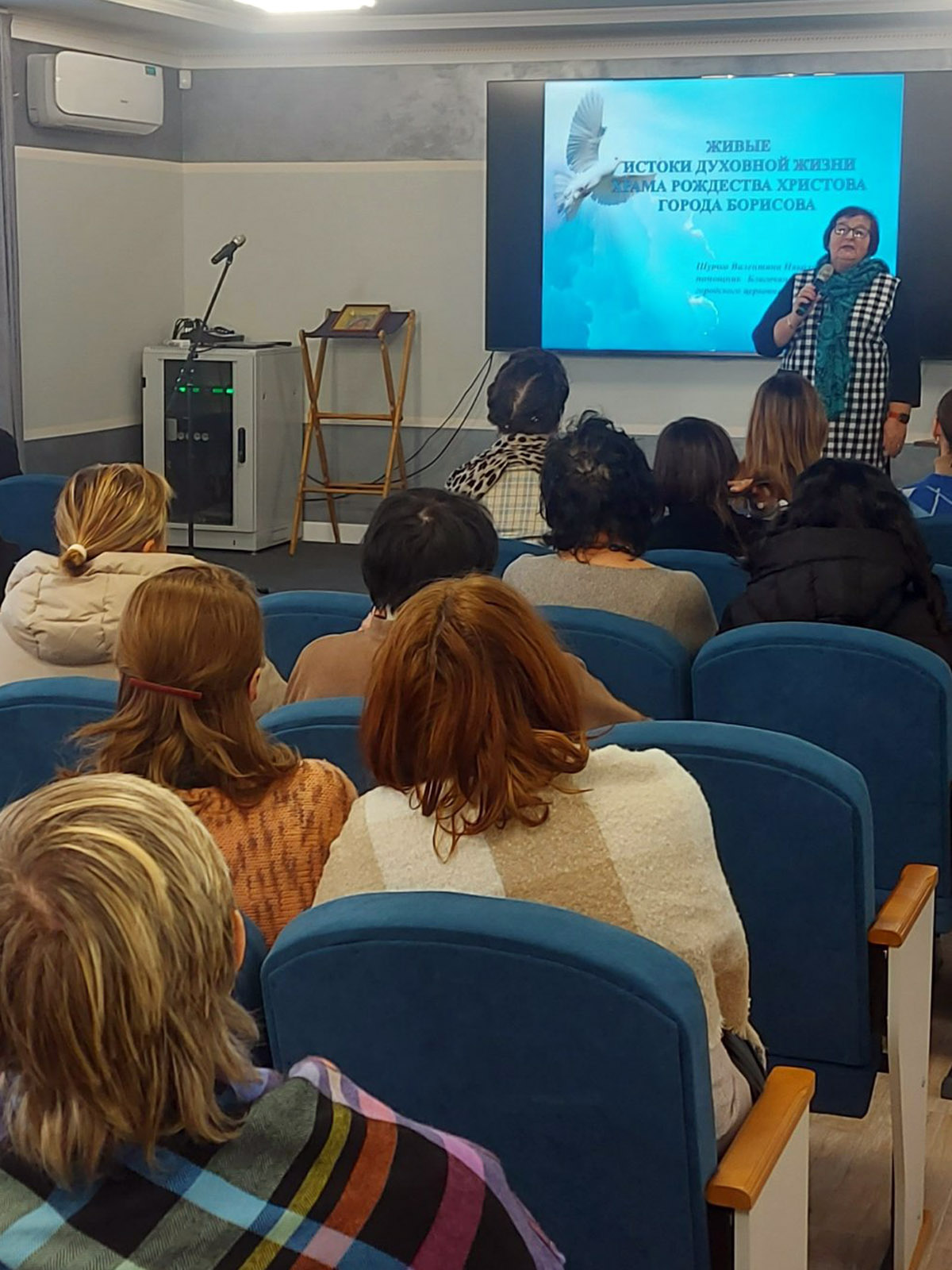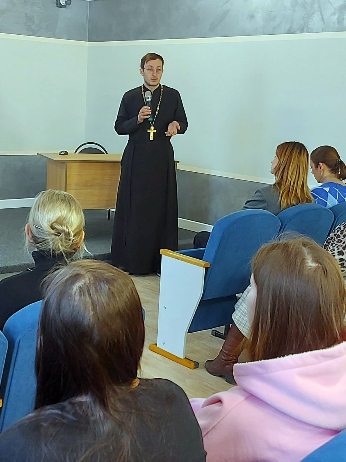 Клирик храма Рождества Христова иерей Артемий Щербицкий рассказал педагогам о Рождестве и Крещении Господа Иисуса Христа, какие библейские события лежат в основе православных праздников и как православные христиане призваны их проводить и праздновать. Священник также рассказал об организованных на приходе молодежных библейских встречах, на которые собираются молодые люди, ищущие Бога. Педагог воскресной школы храма «Истоки» Татьяна Решетняк ознакомила гостей с историей возникновения иконы, кому или каким событиям они посвящены, важность понимания смысла изображения лика Христа или образа святого.