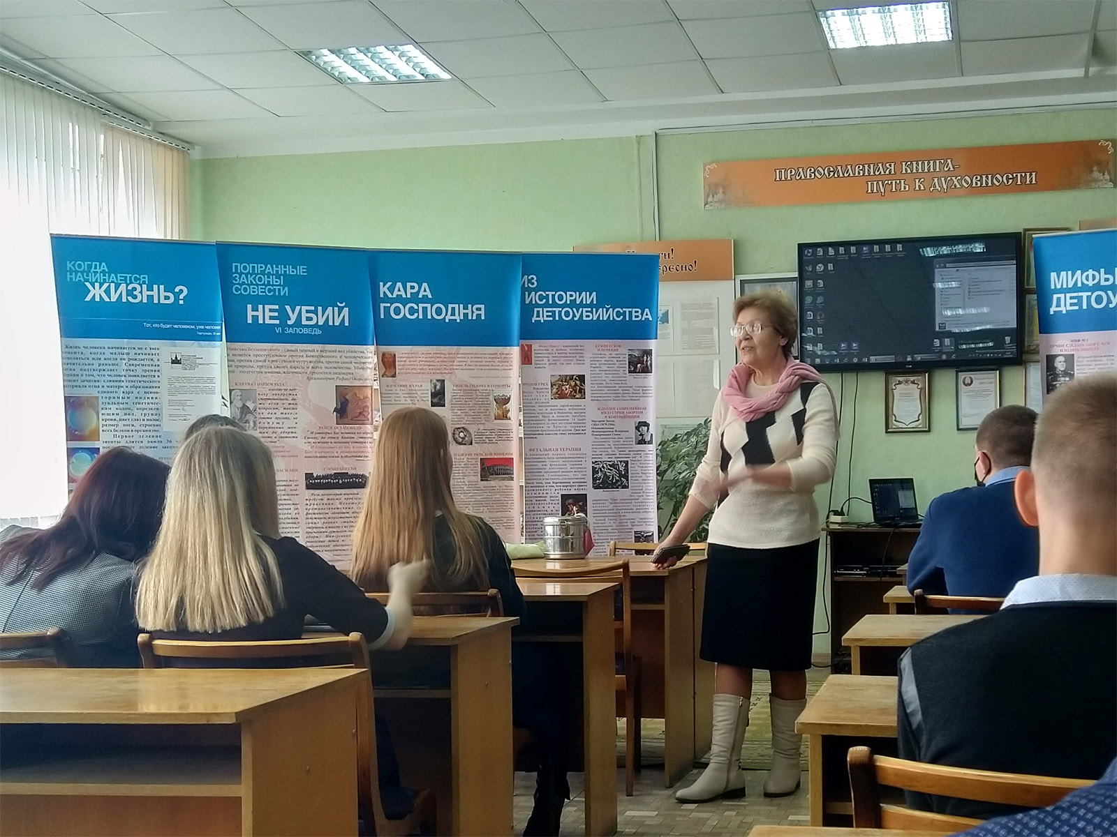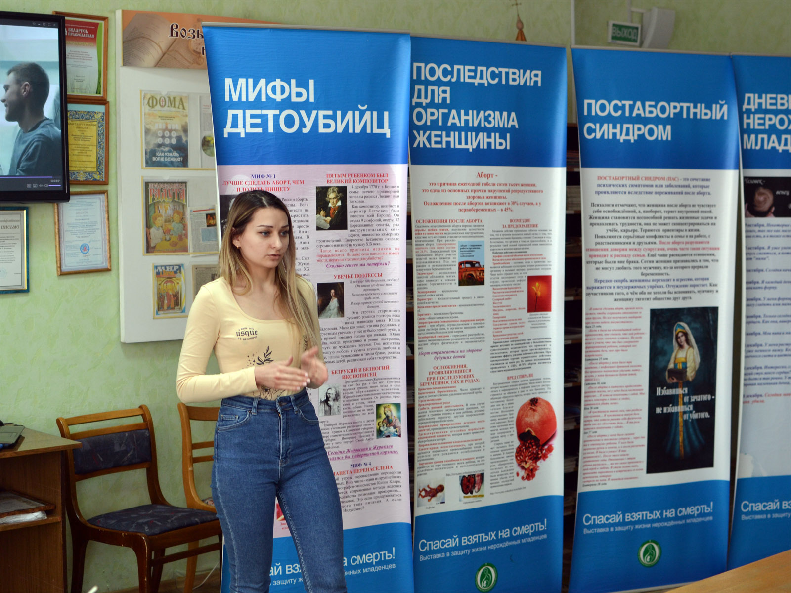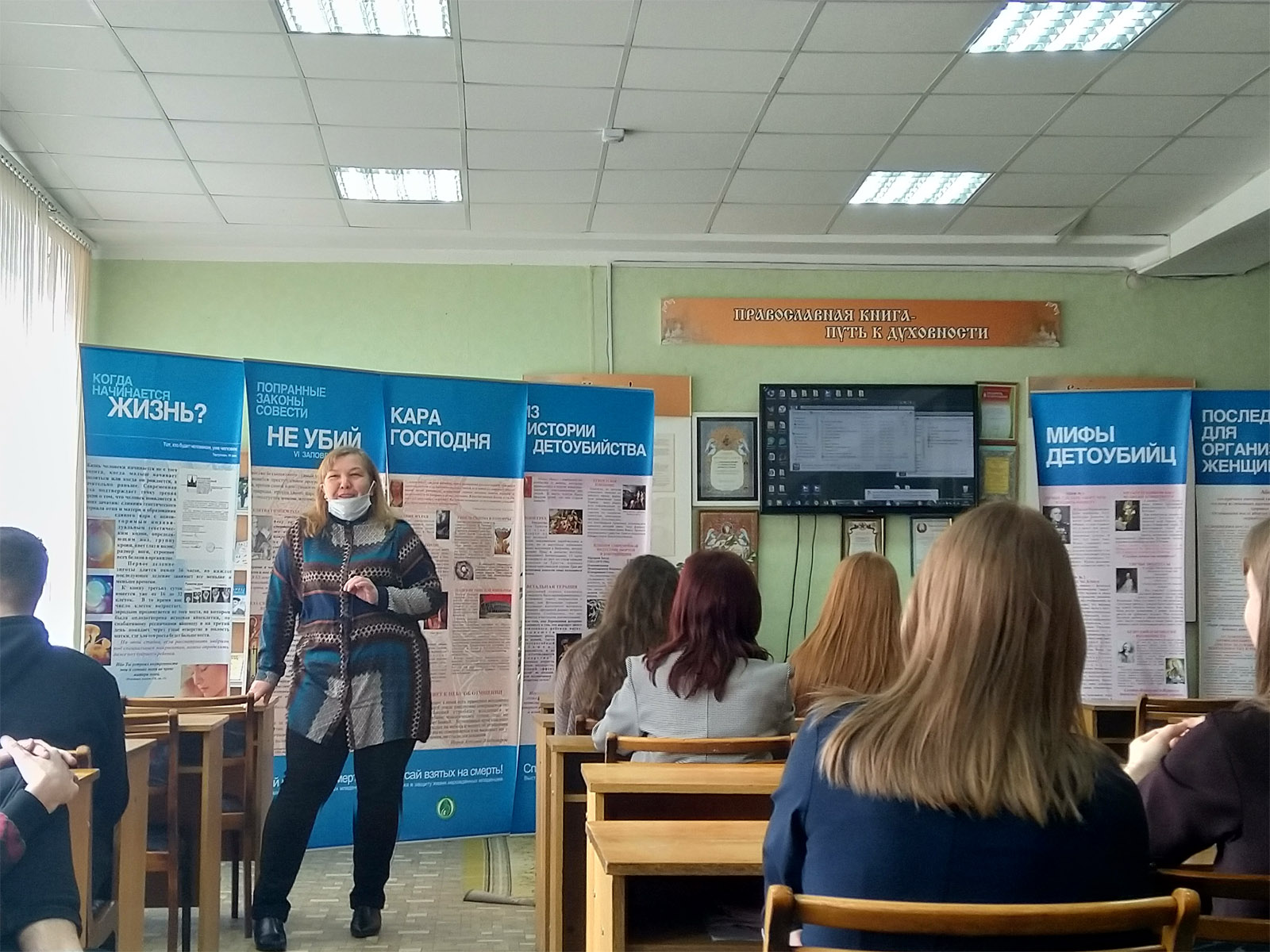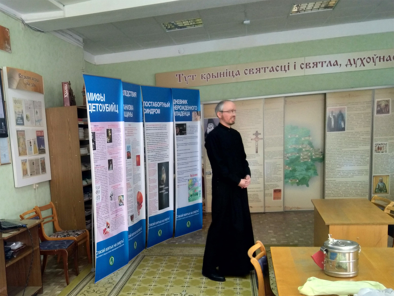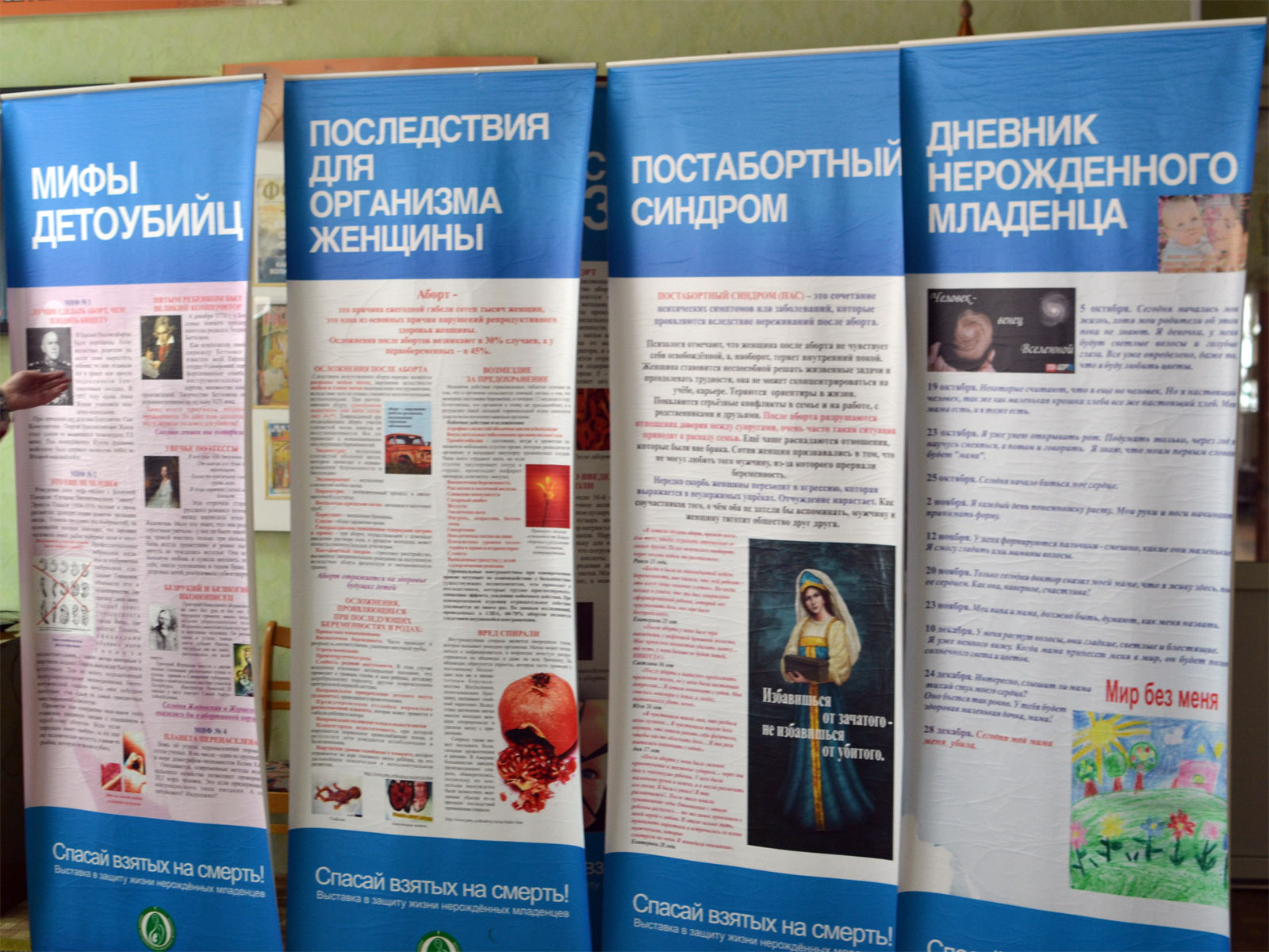 В нынешнем году исполнился своеобразный юбилей. Ровно 10 лет назад в духовно-просветительском центре Борисовской центральной районной библиотеки им. И.Х. Колодеева открылась и стала ежегодно, в феврале-марте, проводиться выставка в защиту жизни нерожденных детей и традиционных семейных ценностей «Спасай взятых на смерть». Инициаторами ее, в сотрудничестве с 1-м Борисовским благочинием, являются Борисовский государственный медицинский колледж, родильный дом и духовно-просветительский центр. На выставке представлены стенды в защиту жизни, семейных ценностей, брака и семьи, против абортов.