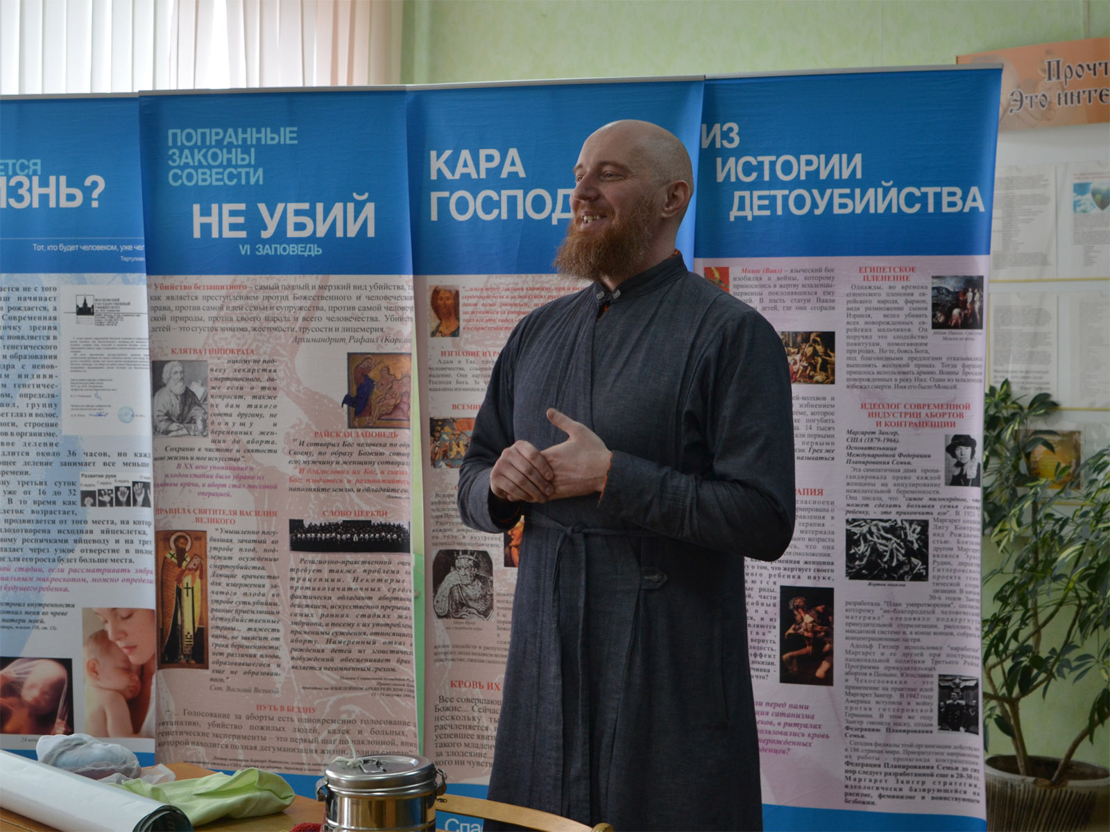 23 - 24 февраля состоялись встречи с учащимися учебных заведений города. О различных проблемах семейных отношений, их сохранения и укрепления, медицинских, нравственных и психологических последствиях абортов выступили сотрудники родильного дома, духовно-просветительского центра. На каждой встрече выступают и священнослужители Борисовских храмов. На нынешней встрече выступили протодиакон прихода храма Рождества Христова г. Борисова Сергий Керко и диакон прихода храма святого благоверного князя Димитрия Донского г. Борисова Сергий Хацкевич.