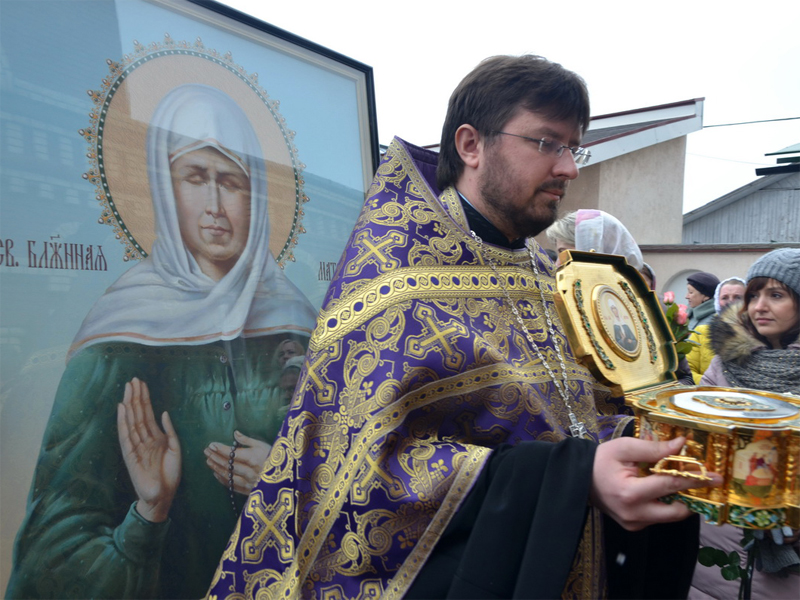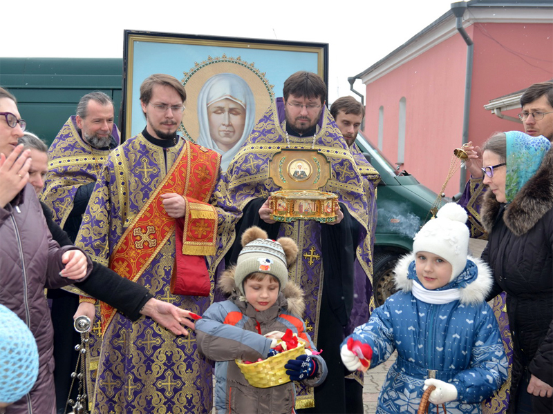 23 марта по благословению Преосвященнейшего Вениамина, епископа Борисовского и Марьиногорского в кафедральный собор Воскресения Христова г. Борисова прибыла икона блаженной Матроны Московской и ковчег с частицей мощей святой. Святыню встретил ключарь кафедрального собора Воскресения Христова г. Борисова протоиерей Павел Яцукович и духовенство собора. Далее был совершен благодарственный молебен. Богослужебные песнопения исполнил хор под управлением регента Марины Кондрашовой. По окончании богослужения протоиерей Димитрий Дорошенко обратился к молящимся со словом назидания в котором призвал молитвенно почтить в эти дни старицу Матрону Московскую. Святыни будут находиться в соборе до 27 марта 15:30.