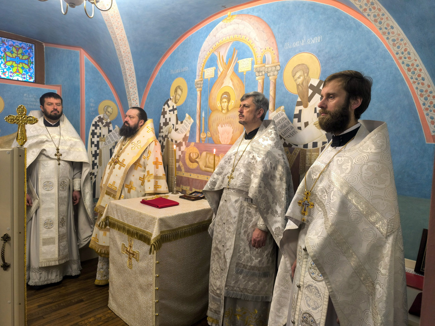 Его Преосвященству сослужили: благочинный Борисовского городского церковного округа протоиерей Александр Вербило; ключарь кафедрального собора Воскресения Христова г. Борисова протоиерей Павел Яцукович; настоятель домового храма иерей Димитрий Качановский.
