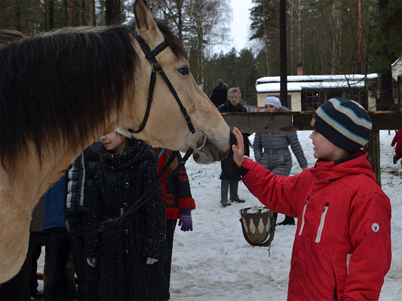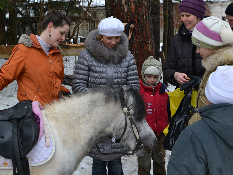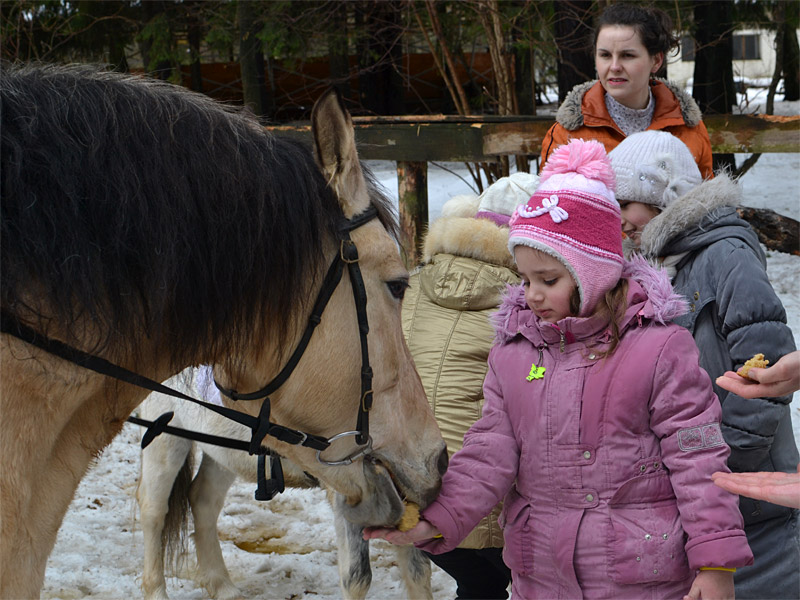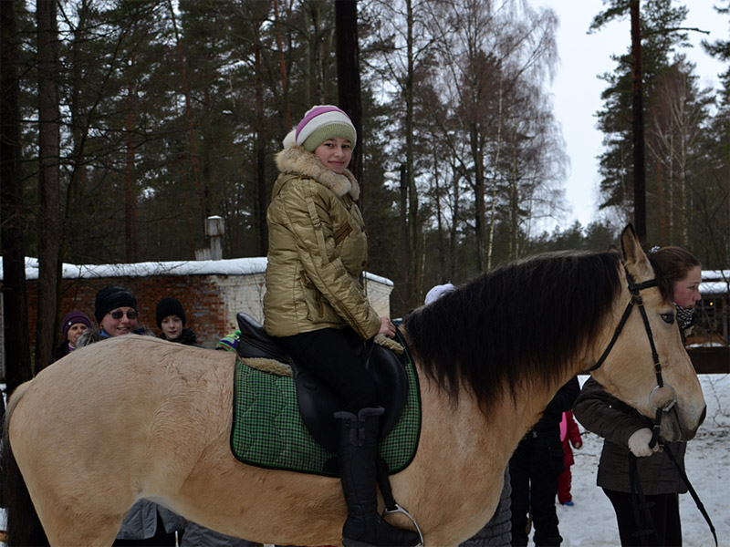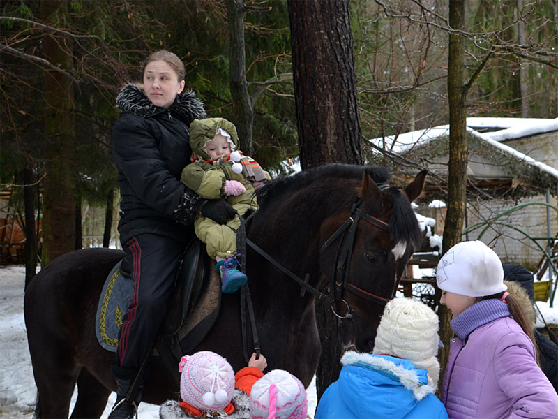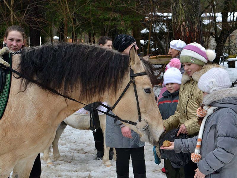 Маленькие катались на пони, а которые побольше — на лошадке. В фойе "Бивака" дети осмотрели экспонаты небольшого музея, посвященном событиям на реке Березине в Отечественную войну 1812 года.