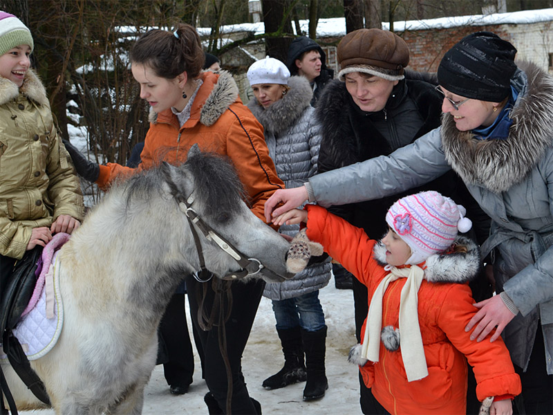 А это, конечно же, катание на лошадях и пони.Восторг и неподдельная радость отражались в глазах ребят, когда они с помощью инструкторов верхом на прекрасных животных совершали круг по манежу.