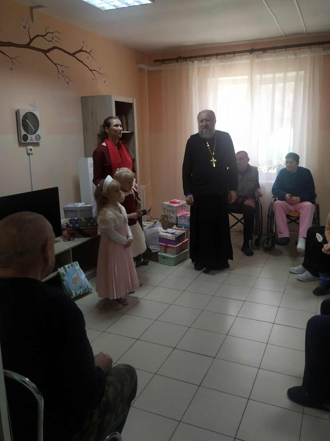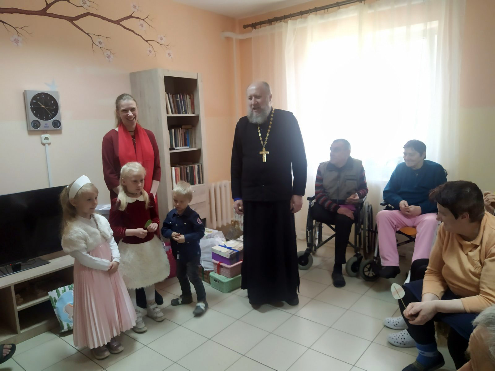 На праздничной седмице 25 апреля дом-интернат «Юзефово» посетили с поздравлениями и подарками Благочинный 1-го Борисовского церковного округа – протоиерей Александр Вербило и руководитель отдела по церковной благотворительности и социальному служению Борисовской епархии иерей Александр Лукьянович, а также матушка Ксения Качановская (руководитель молодежного братства в честь святого священномученика Василия Измайлова).
