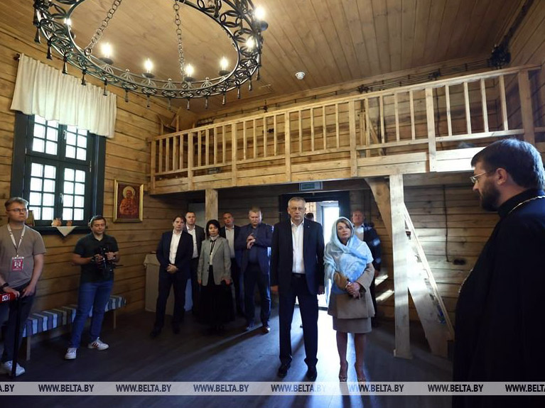 Мероприятие в «Хатыни» продолжилось посещением храма Рождества Пресвятой Богородицы, где их встретил настоятель храма протоиерей Павел Яцукович.