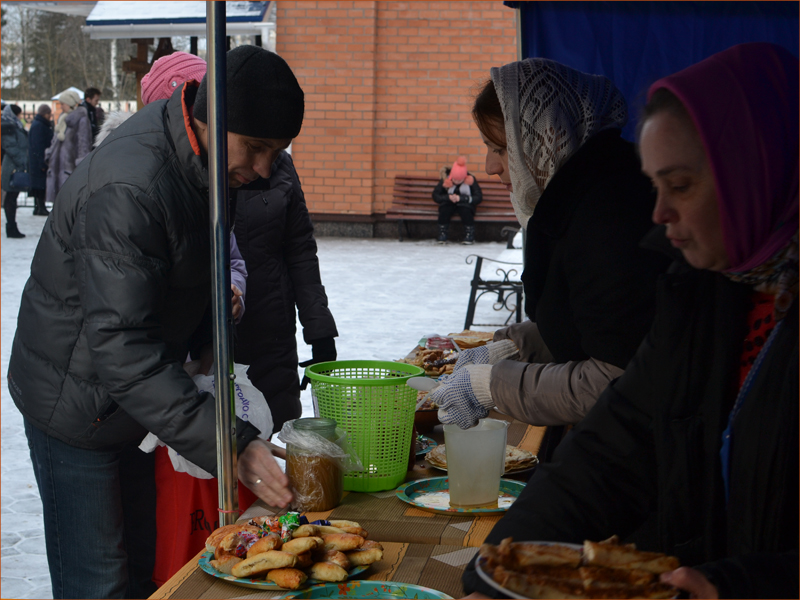 26 февраля после Божественной литургии на территории храма Рождества Христова г. Борисова для прихожан была организована масленица, празднование которой происходит от старинного праздника проводов зимы, сохранившегося на Руси и после принятия христианства. В среде несведущих людей существует мнение, что масленица — это праздник скорее языческий, а не православный. Это не совсем так. Эта подготовительная неделя к Великому посту посвящена в христианском смысле одной цели — примирению с ближними, прощению обид, подготовке к покаянному пути к Богу — в этом христианская составляющая масленицы. Масленица — это время, которое нужно посвятить доброму общению с ближними, родными, друзьями, благотворению. Вот и в приходе храма Рождества Христова г. Борисова было все организовано так, чтобы всем было не только радостно, но и каждому было близко друг к другу, чтобы подготовить себя к Великому посту.