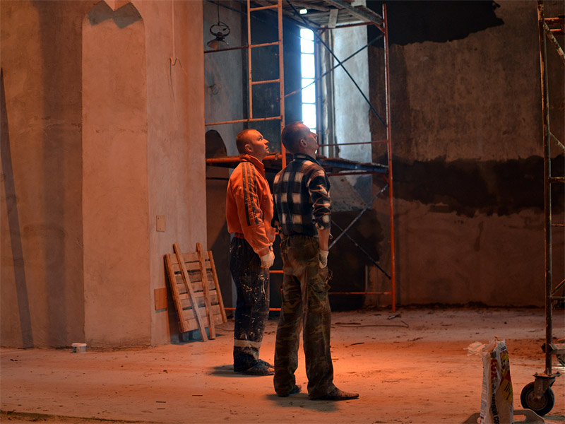 Отец Александр побывал также в Свято-Воскресенском кафедральном соборе, где продолжаются реставрационные работы.