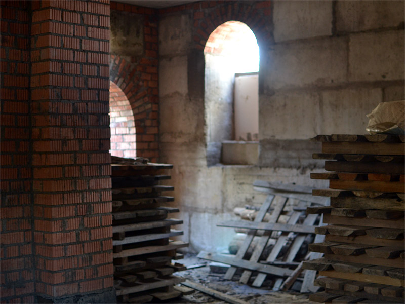 Возведение лядищенского храма началось летом прошлого года. За это время построен и перекрыт цоколь. Здесь в дальнейшем будет размещаться нижний храм. С началом зимы строительство самого здания не осуществлялись. Однако работы не приостановились. На территорию строящегося храма завозился песок для ее выравнивания и планировки. Всего было завезено около полутора тысяч машин! Ведь эту территорию окружают огромные ямы и рвы, которые необходимо засыпать и затем произвести благоустройство.