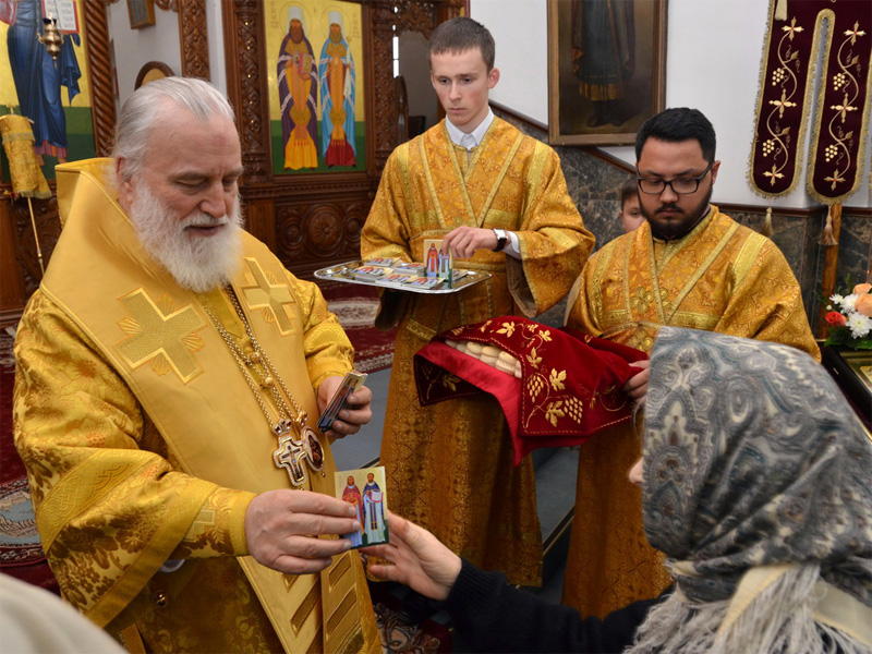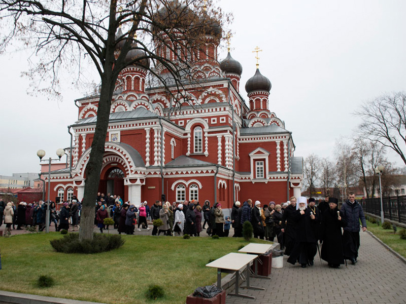 26 ноября, в день памяти святителя Иоанна Златоуста, митрополит Минский и Заславский Павел, Патриарший Экзарх всея Беларуси, и епископ Борисовский и Марьиногорский Вениамин совершили Божественную литургию в кафедральном соборе Воскресения Христова города Борисова. Архипастырям сослужили: управляющий делами Минской Экзархии архимандрит Сергий (Брич); секретарь Минской епархии протоиерей Андрей Волков; секретарь Борисовской епархии протоиерей Павел Яцукович; благочинный I Борисовского церковного округа протоиерей Александр Вербило; благочинный II Борисовского церковного округа протоиерей Сергий Башкиров; клирики кафедрального собора и духовенство епархии. За богослужением молился почетный настоятель Воскресенского кафедрального собора митрофорный протоиерей Иоанн Мисеюк. Праздничные песнопения исполнил хор Воскресенского собора под управлением диакона Михаила Сидорова. Также присутствовали и молились: заместитель председателя Минского областного исполнительного комитета Виктор Иванович Сиренко, председатель Борисовского районного исполнительного комитета Владимир Владимирович Миранович и другие представители администрации города. Проповедь перед причащением произнес клирик Воскресенского собора протоиерей Игорь Васько. После заамвонной молитвы священнослужители совершили славление празднику. Епископ Борисовский Вениамин обратился с приветственным словом к Патриаршему Экзарху и преподнес в дар икону Божией Матери. Владыка Павел поблагодарил епископа Вениамина, поздравил прихожан и духовенство собора с праздником и обратился к присутствующим в храме со словом назидания. Также митрополит Павел поздравил причастников с принятием Святых Христовых Таин и преподал всем архипастырское благословение. На молитвенную память все присутствующие получили иконки священномучеников Василия и Николая, пресвитеров Борисовских. По окончании богослужения владыка Павел ознакомился с ходом реставрации ансамбля Воскресенского кафедрального собора и осмотрел новое здание епархиального управления.