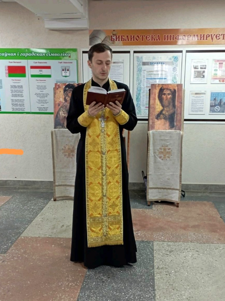 Церемония открытия началась с молебна, который совершил клирик храма Рождества Христова г. Борисова иерей Артемий Щербицкий. С приветственным словом к собравшимся выступила Валентина Лысковец, заведующая духовно-просветительским центром библиотеки.