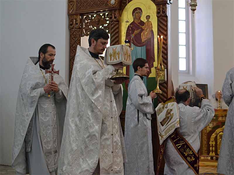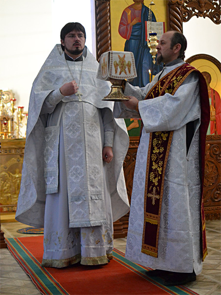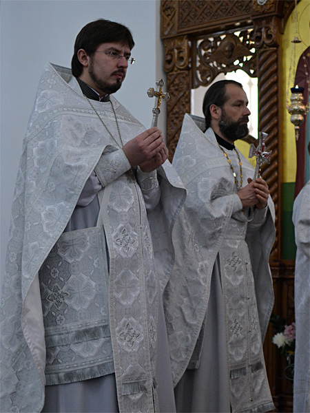 Его Преосвященству сослужили: почетный настоятель собора митрофорный протоиерей Иоанн Мисеюк; благочинный Борисовского церковного округа, настоятель прихода храма Рождества Христова протоиерей Александр Вербило; клирики собора — протоиерей Димитрий Дорошенко, иерей Павел Яцукович и протодиакон Георгий Росляков; настоятель прихода храма Святого Архангела Михаила в д. Зембин иерей Андрей Капульцевич; настоятель прихода храма Святой Живоначальной Троицы в д. Бытча иерей Андрей Иваненко; настоятель прихода храма Преображения Господня в д. Велятичи иерей Иоанн Белоцерковский