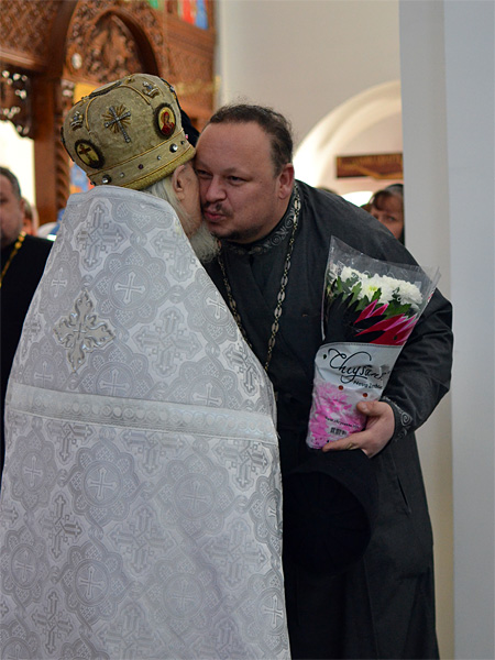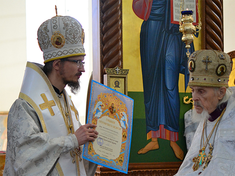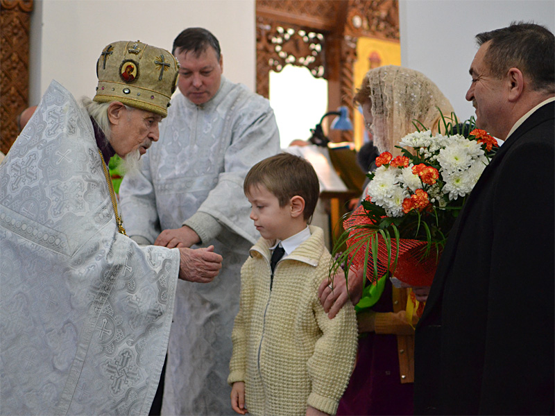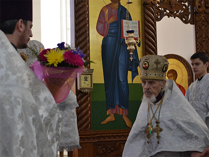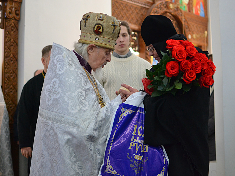 По окончании Божественной литургии состоялось чествование старейшего священника Борисовского благочиния, почетного настоятеля Свято-Воскресенского кафедрального собора, митрофорного протоиерея Иоанна Мисеюка, которому в этот день исполнилось 90 лет.