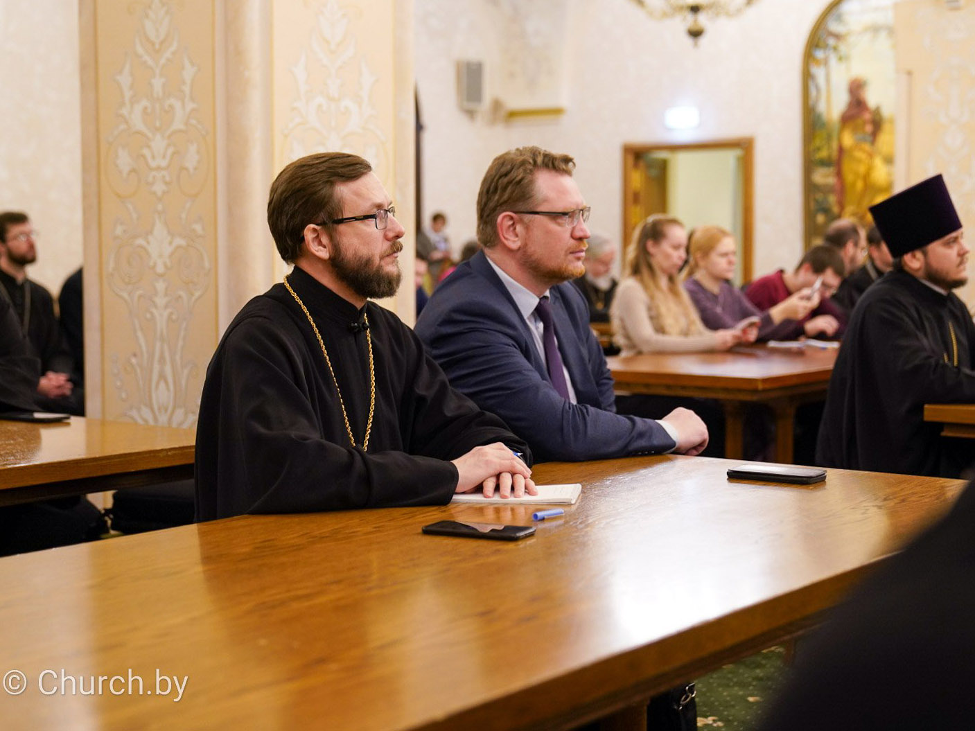 Руководитель Отдела по взаимоотношениям Церкви с обществом и СМИ обратил внимание собравшихся на необходимость всемерной поддержки законодательных инициатив Святейшего Патриарха, выдвинутых им 26 января в ходе выступления на XI Рождественских Парламентских встречах в Государственной Думе РФ: о комплексе мер, направленных против абортов и в защиту человеческой жизни, о законодательных нормах, усиливающих социальную защищенность женщины с первых дней беременности, о включении в трудовой стаж периода ухода одного из родителей за тремя и более детьми, о мерах поддержки прав и интересов многодетных и пр.
