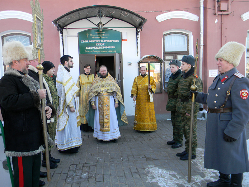 Затем духовенством храма с участием игумена Евсевия проведена Божественная литургия. В завершении с иконой преподобной Манефы Гомельской вокруг Свято-Воскресенского кафедрального собора состоялся крестный ход. В нем приняли участие прихожане храма, а также офицеры Борисовского отдела Белорусского казачества, учащиеся кадетских классов средних школ № 13 и 18.