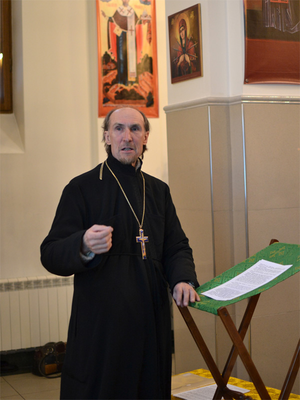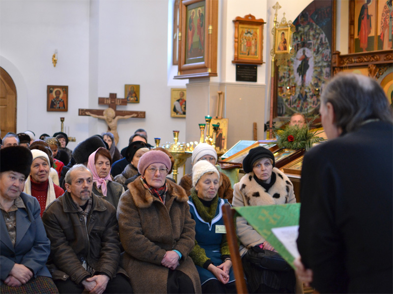 В храме Святого благоверного князя Дмитрия Донского состоялось очередное занятие воскресной школы для взрослых. Впрочем, сюда были приглашены не только прихожане, но и все желающие, так как на занятиях выступал с лекцией Владимир Григорьевич Башкиров — протоиерей, профессор Минской духовной академии, доктор богословия, один из немногих в Беларуси, имеющий такое звание и научную степень. О заинтересованности в лекции отца Владимира свидетельствовало то, что храм был практически полностью заполнен слушателями.