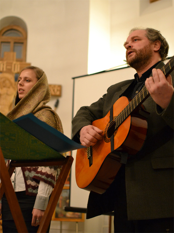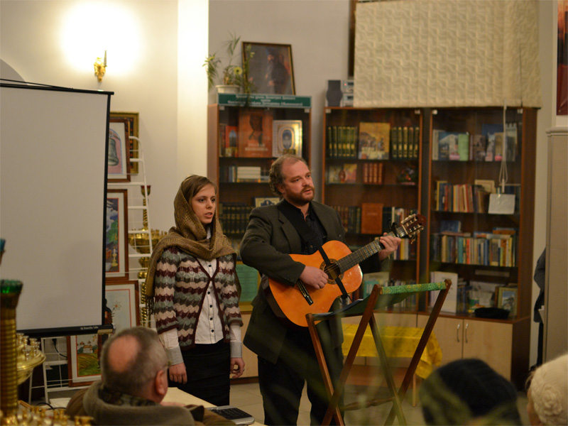 После лекции состоялся небольшой концерт коллектива творческого объединения «Литературная гостиная» духовно-просветительской газеты «Воскресенье». Руководитель объединения, главный редактор газеты Елена Иосифовна Михаленко перед началом концерта рассказала присутствующим о самом коллективе, о том, что он объединяет поэтов, писателей, артистов, что они выступали за время своего существования во многих городах и районах Беларуси. Не единожды проводили концерты и в Борисове. Вокальный дуэт объединения исполнил духовные песни прошлых времен, бардовские песни на христианские мотивы.