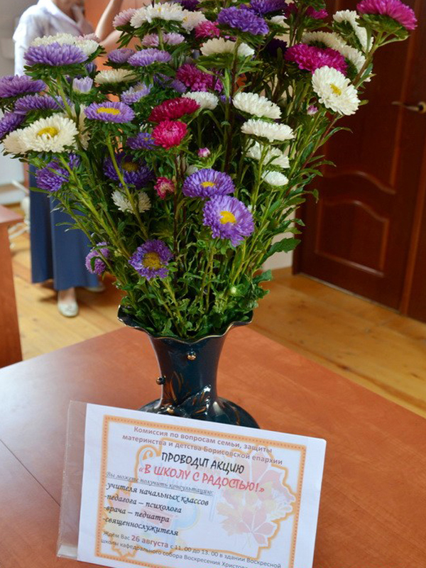 26 августа комиссия по материнству и семье Борисовской епархии провела ставшую уже традицией ежегодную акцию «В школу с радостью!». Мероприятие прошло в здании епархиального управления и собрало большое множество желающих получить квалифицированную консультацию и ответы специалистов: преподавателя начальных классов, педагога-психолога, врача-педиатра и конечно же священнослужителя.