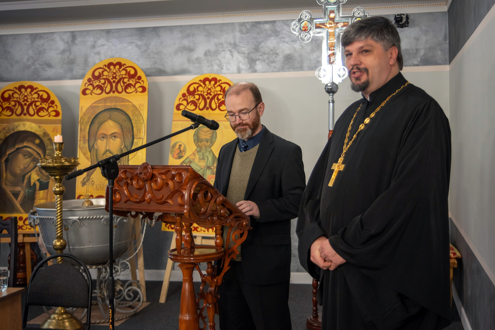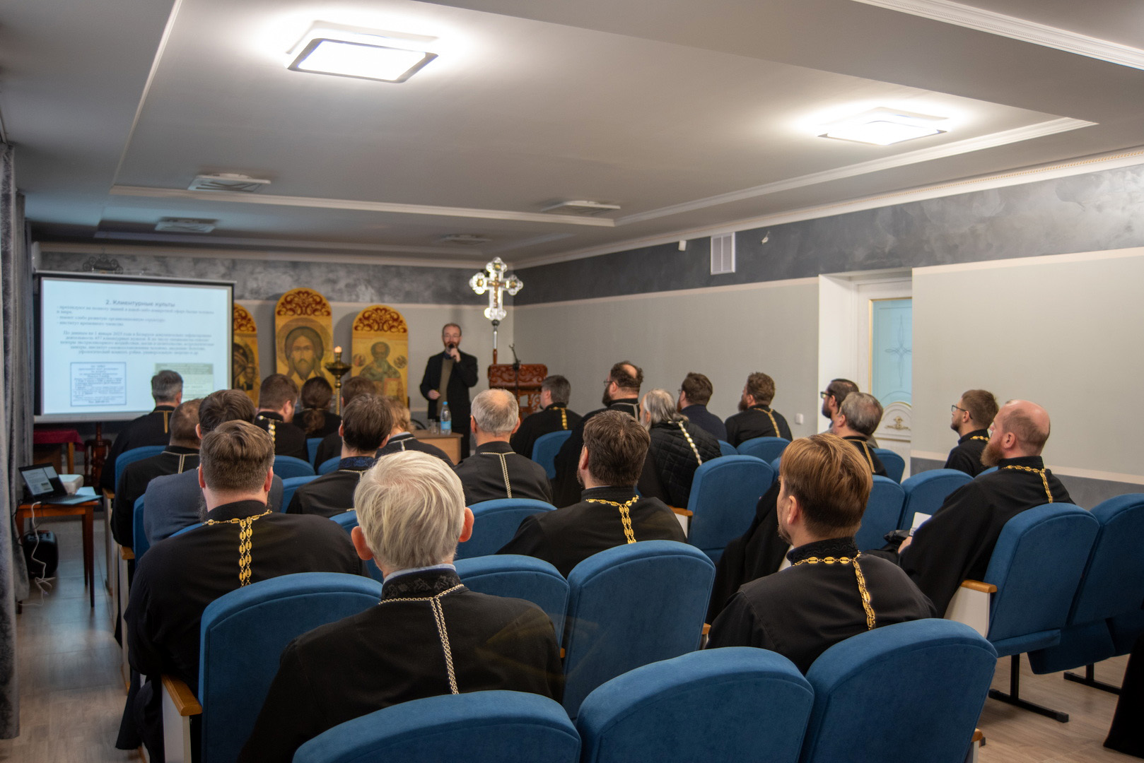 Перед началом доклада Владимира Александровича представил иерей Никодим Пашков, главный сектовед Борисовской епархии. В своём содержательном выступлении доктор теологии Владимир Мартинович осветил актуальные вопросы, связанные с феноменом нетрадиционной религиозности в Республике Беларусь: её исторические корни, современные тенденции распространения, а также вызовы, с которыми сталкивается традиционное православное сообщество.