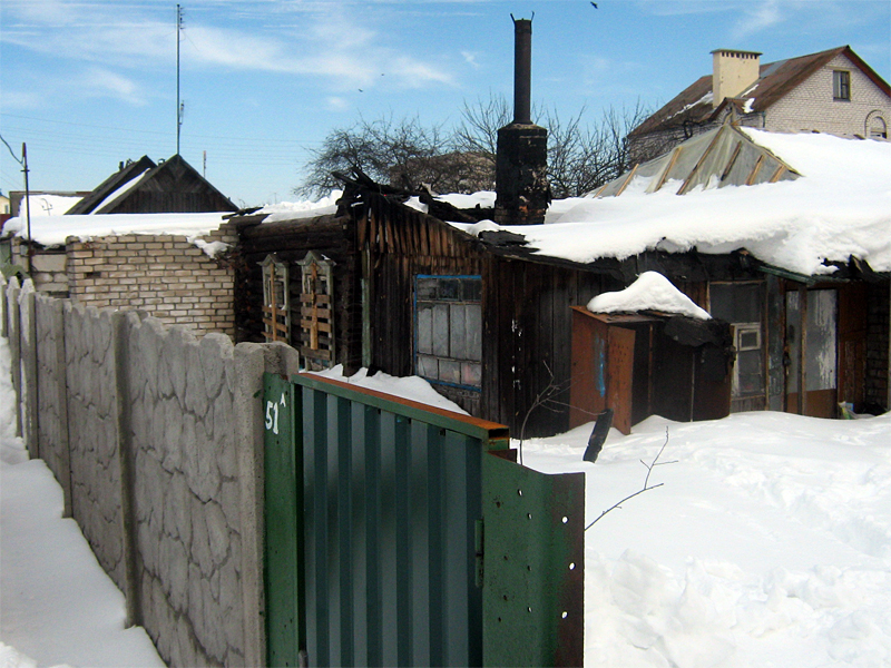 Семья Дорошко пострадала по причине халатности соседей. Хозяйка дома Антонина Александровна 1989 года рождения в настоящее время находится в отпуске до 3-х лет по уходу за дочками близнецами, которым исполнилось 9 месяцев. Муж работает машинистом башенного крана в УМ 79. Совместно с ними проживают бабушка и дедушка- неработающие пенсионеры, которые воспитывали Антонину с 2-х летнего возраста, после лишения матери родительских прав. Семья не имеет личных сбережений. Сумма выплат по обязательному страхованию составила всего 6.6 млн.руб. которых недостаточно для восстановительных и ремонтных работ домовладения.