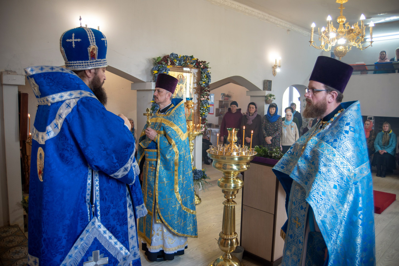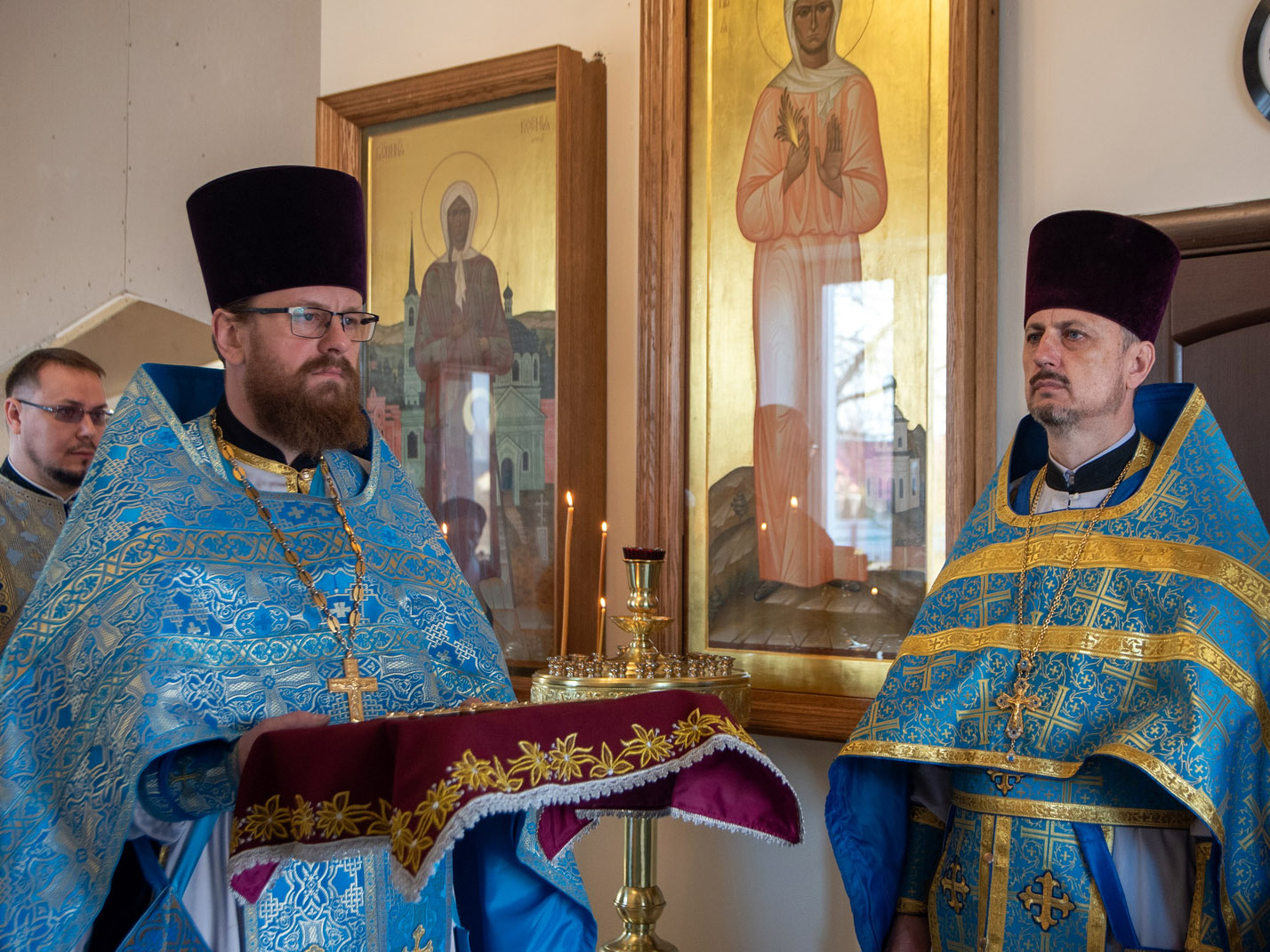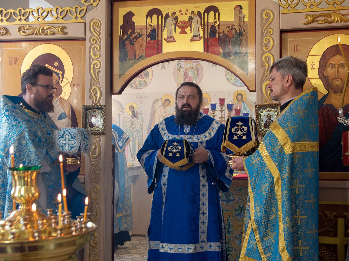 Его Преосвященству сослужили: благочинный Борисовского городского церковного округа протоиерей Александр Вербило, настоятель прихода иерей Антоний Семилет.