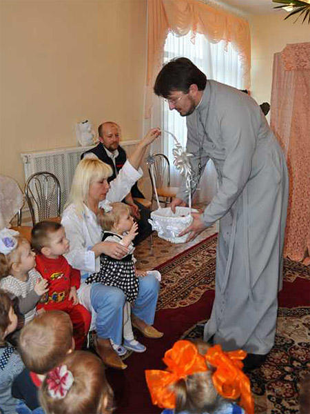 Вместе с молодежью в гостях у малышей был и священник – иерей Павел Яцукович.