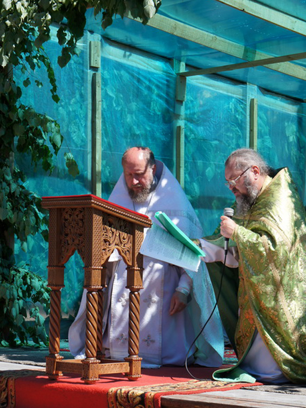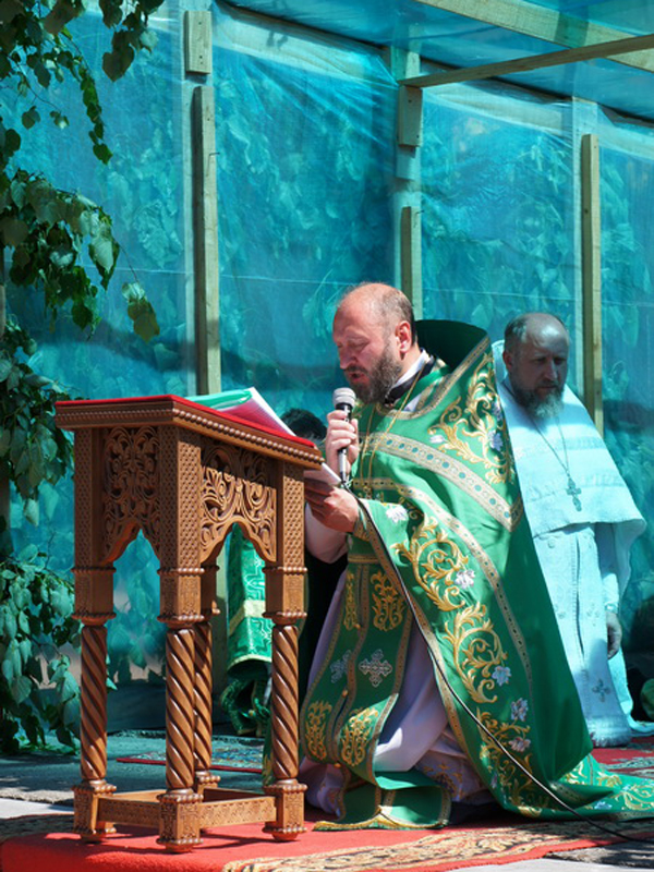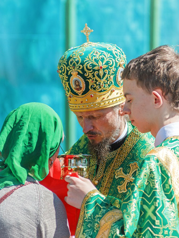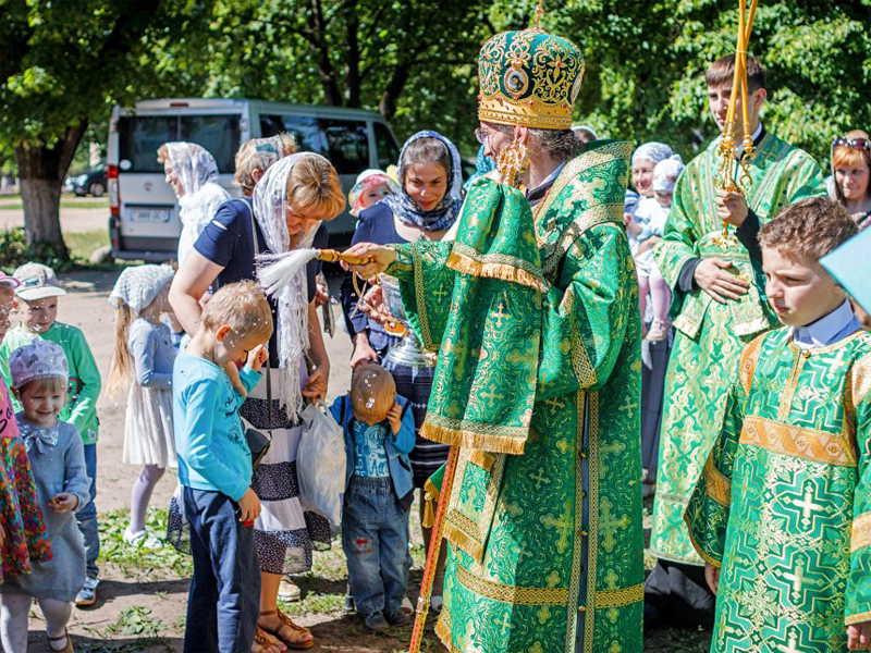 По завершении Литургии был совершён крестный ход, после чего Преосвященнейший владыка обратился к молящимся с проповедью и поздравил всех с праздником Святой Троицы. Далее состоялась общая трапеза. Каша и чай были приготовлены поварами 740-й зенитно-ракетной бригады, которая духовно окормляется отцом Георгием Тюхловым. На площадке перед храмом для детей была организована познавательная викторина, рассказывающая о празднике Святой Троицы. Отделом по материнству и семье проведена очередная акция.