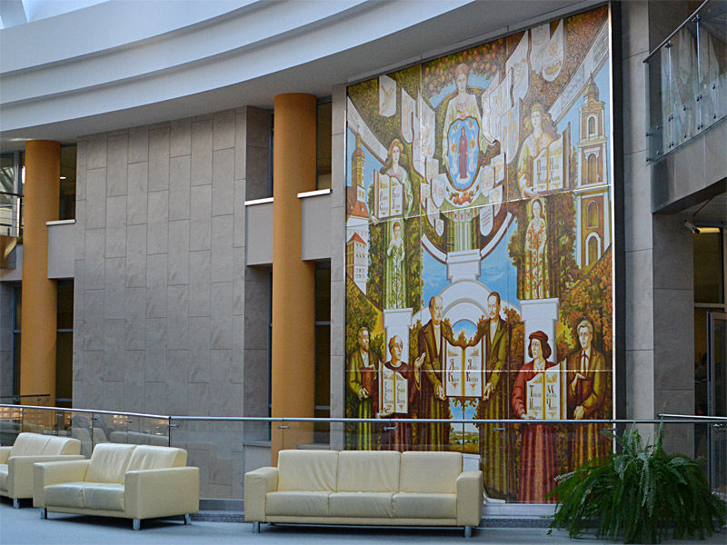 Экскурсоводы рассказали об истории библиотеки, о ее фондах, провели детей по помещениям. Особый интерес представлял музей рукописей и редких книг, в котором находятся первые печатные издания, в том числе книга Франциска Скорины, старинные Евангелия. Дети имели также возможность подняться на смотровую площадку и с высоты здания библиотеки увидеть панораму Минска.