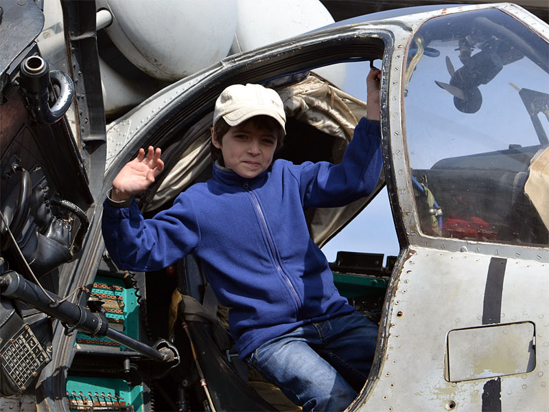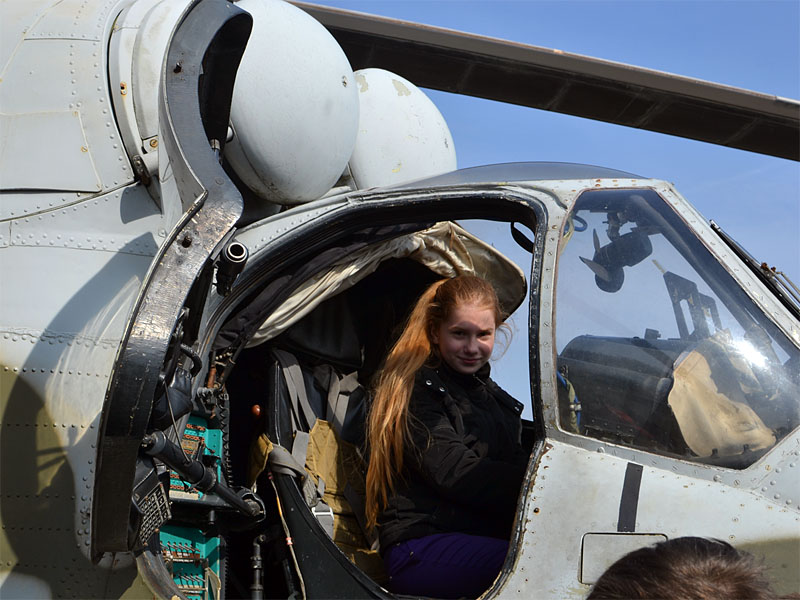 Ребята побывали в кабинах военного вертолета и самолета, почувствовали себя пилотами. Свободного времени было много, мы осмотрели каждый летательный аппарат, очень впечатлил грузовой (самый большой) вертолет.
