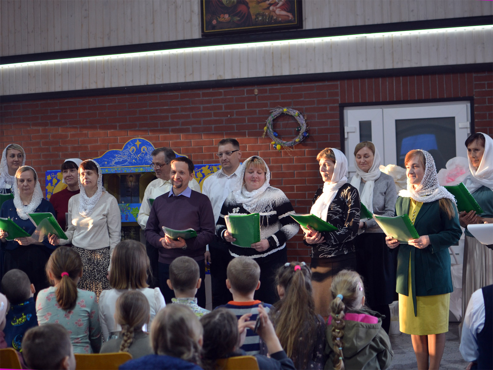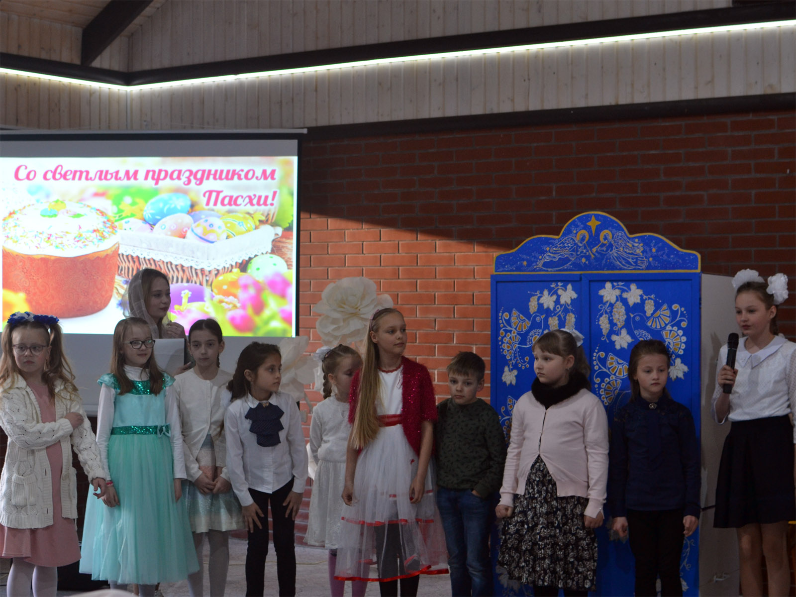 29 апреля в канун дня святых жен-мироносиц после вечернего богослужения в приходском доме храма Рождества Христова г. Борисова состоялся праздничный пасхальный концерт, на котором выступил хор детской воскресной школы и народный церковный хор прихожан храма. Дети и взрослые пели пасхальные песни, читали стихи.