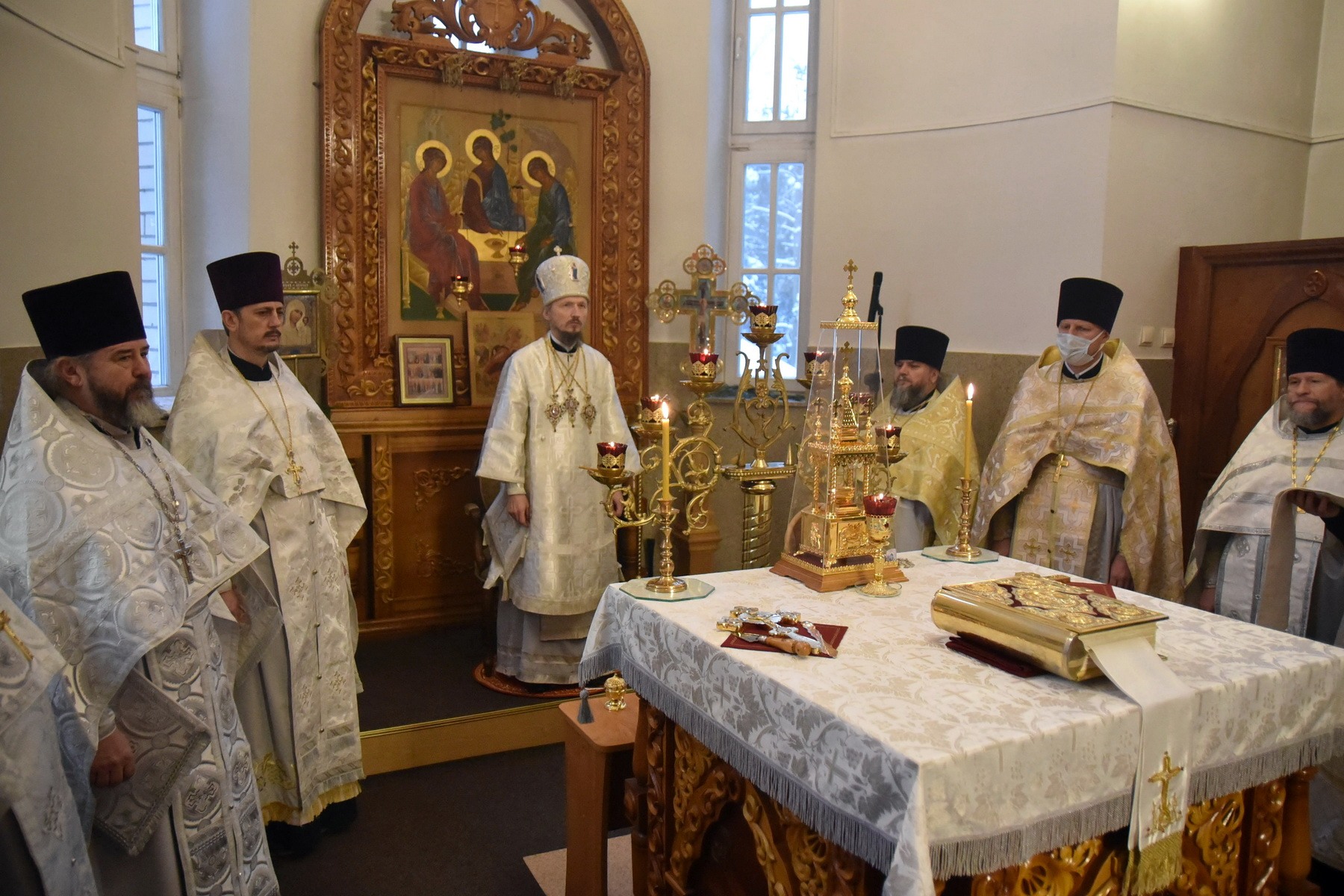 За набажэнствам былі ўзнесены асаблівыя малітоўныя прашэнні аб дараванні міру беларускаму народу і аб спыненні распаўсюджвання шкоднаснага паветрыя. Па завяршэнні набажэнства прычаснікі прынялі віншаванне з прыняццем Святых Хрыстовых Тайн і ўсе вернікі, хто маліўся ў храме, – архіпастырскае благаславенне ад мітрапаліта Веніяміна.