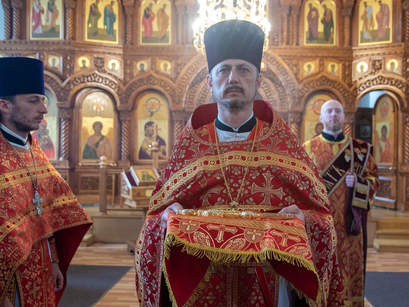 Во время Литургии были вознесены сугубые молитвенные прошения о восстановлении мира.