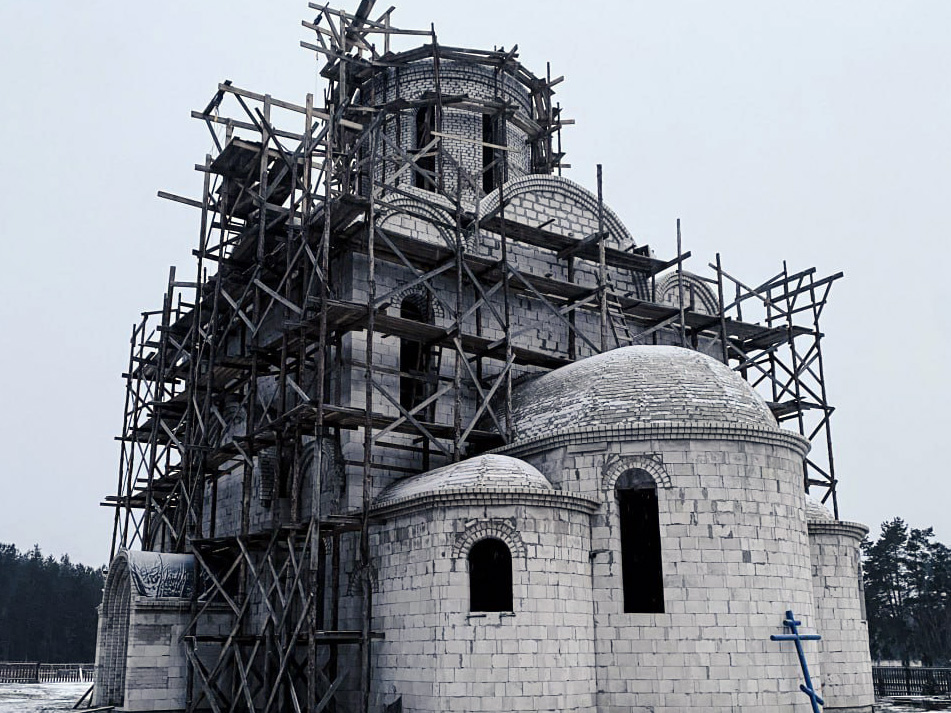 На сегодняшний день уже возведено основное здание храма. Сейчас мы собираем средства на устройство куполов и крестов — завершающих, но чрезвычайно важных элементов храмового убранства, через которые здание обретает свой священный облик.
