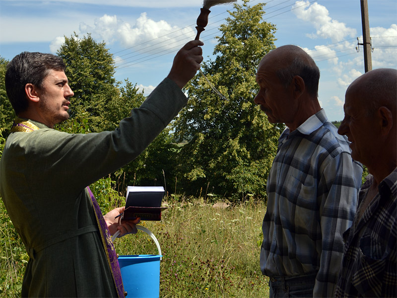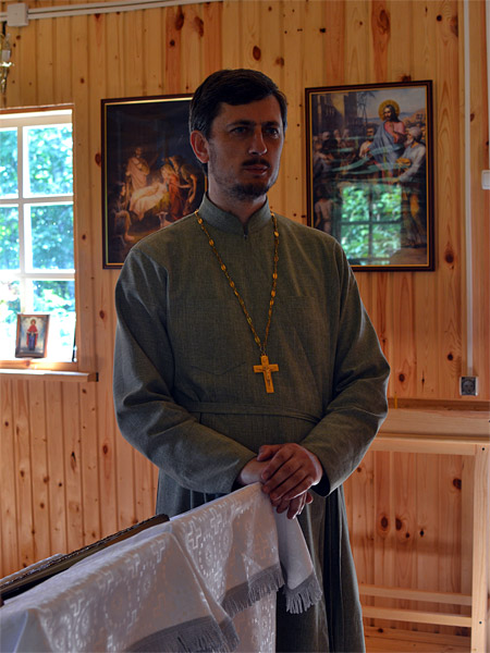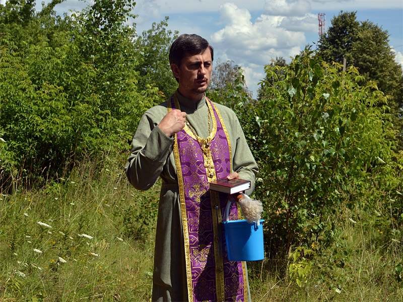 После освящения креста отец Александр побывал в деревне Замошье, где посетил часовню в честь Архангела Михаила.
