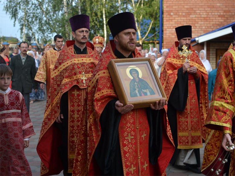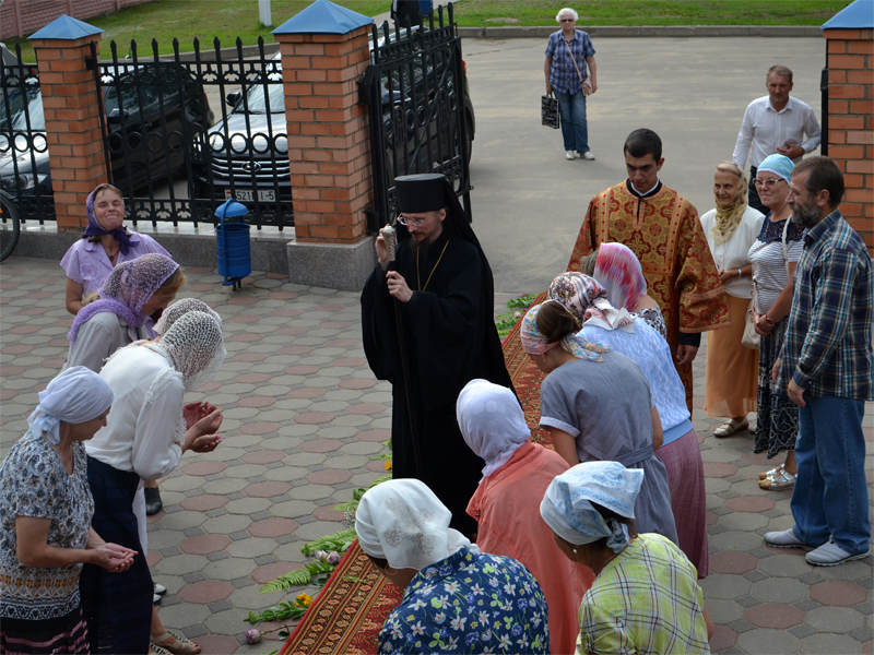 После окончания богослужения был совершен крестный ход, участники которого прошли к месту захоронения основателя храма Михаила Мартиновича Волосача, по которому владыка Вениамин совершил заупокойную литию. По завершении крестного хода епископ Борисовский и Марьиногорский Вениамин обратился к прихожанам с проповедью, в которой рассказал о житии святой мученицы Иулии Карфагенской. На богослужении присутствовал праправнук А.И. Веригина, основателя Юльевской церкви-школы, В. Веденеев, приехавший на престольный праздник из Москвы.