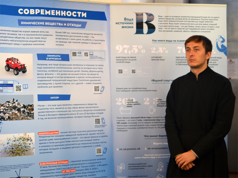 30 сентября после Божественной литургии в храме Святого Богоявления прихода Святой Живоначальной Троицы г. Борисова была проведена выставка «Человек и творение». Перед ее началом настоятель прихода протоиерей Георгий Тюхлов отметил важность и значение выставки для прихожан и особенно для молодого поколения. Выставку проводили, как и в храме Рождества Христова, заведующая библиотекой ГУО «Учебно-педагогический комплекс ясли сад-средняя школа № 24 г. Борисова» Яунишкене Светлана Алексеевна и студент Минской духовной семинарии Артур Щербицкий.