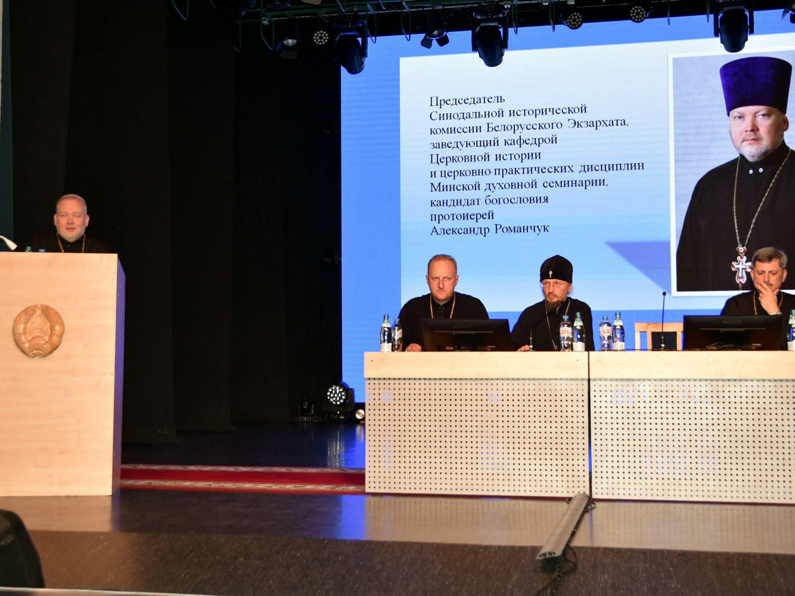Далее протоиерей Александр Романчук выступил перед священнослужителями с докладом, в котором были рассмотрены вопросы распространения и утверждения христианства на белорусских землях в Х–XIII вв., затронуты моменты развития Православной Церкви на белорусских землях в период Великого княжества Литовского и Речи Посполитой (XIII–XVIII ст.), в период Российской империи (кон. XVIII – нач. ХХ ст.). Не остались без внимания и исторические вопросы Православной Церкви ХХ – нач. XXI вв.