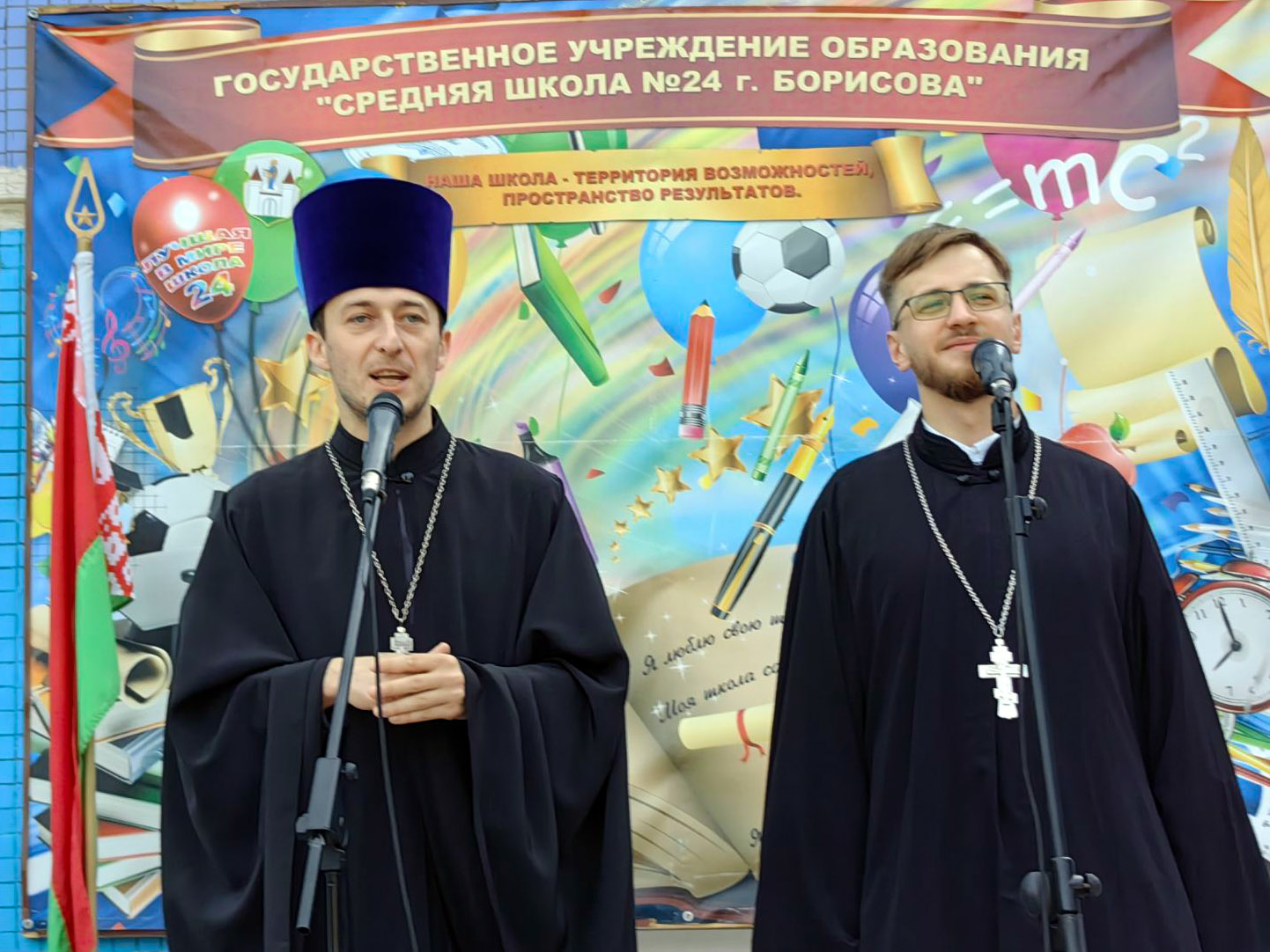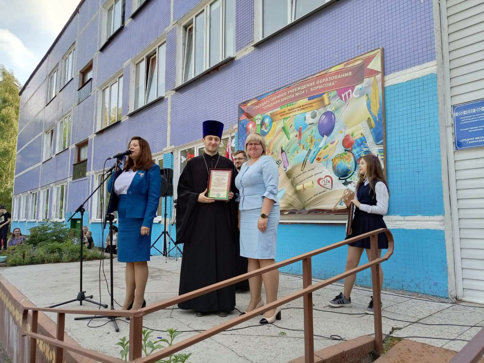 31 мая в ГУО «Средняя школа № 24 г. Борисова» состоялись торжества, посвященные окончанию учебного года, в которых принял участие клирик храма Рождества Христова г. Борисова иерей Артемий Щербицкий.